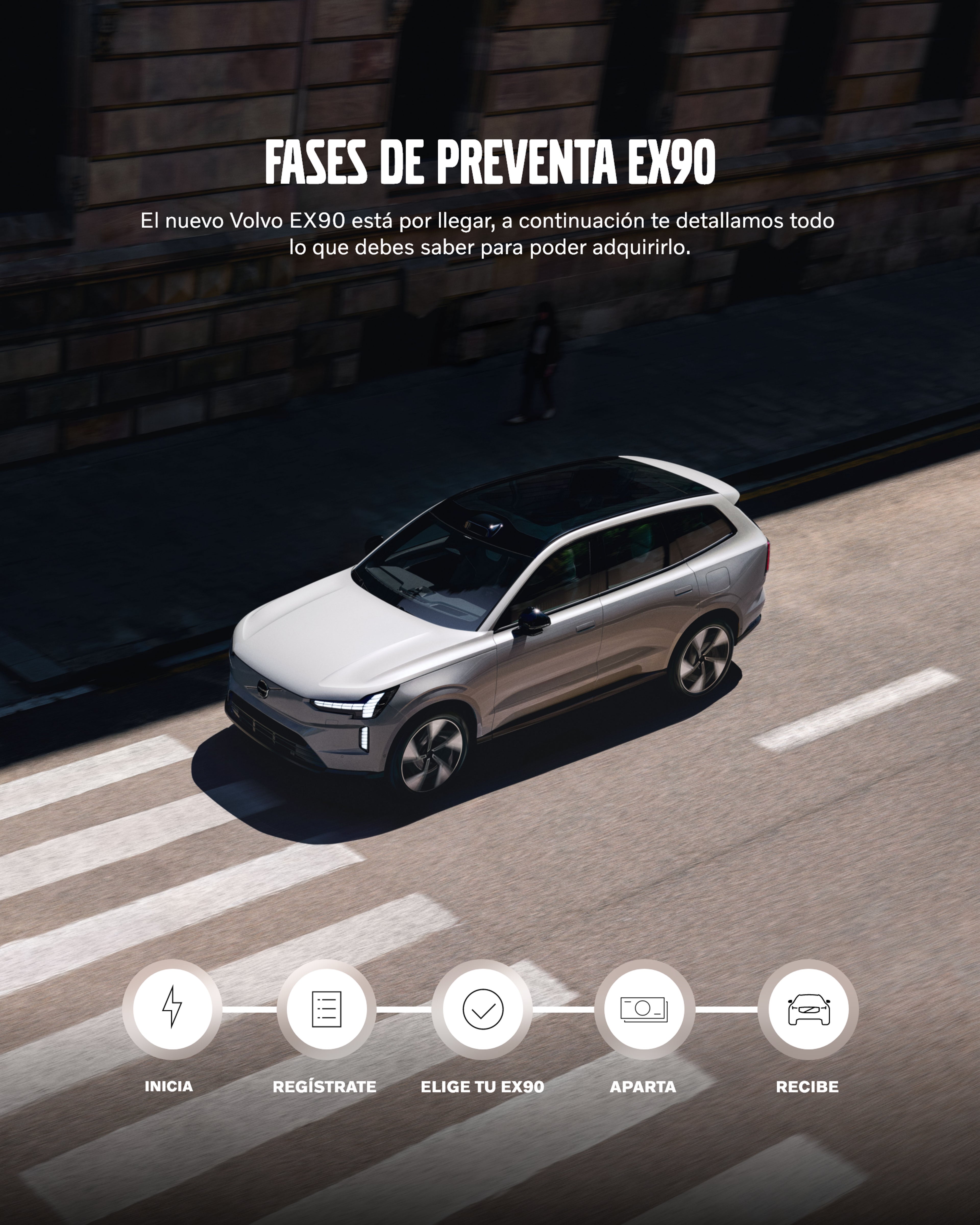 En esta etapa, conoce y resuelve todas tus dudas sobre el nuevo Volvo EX90 100% eléctrico. Deja que te acompañemos, inicia tu proceso dando clic en el botón.